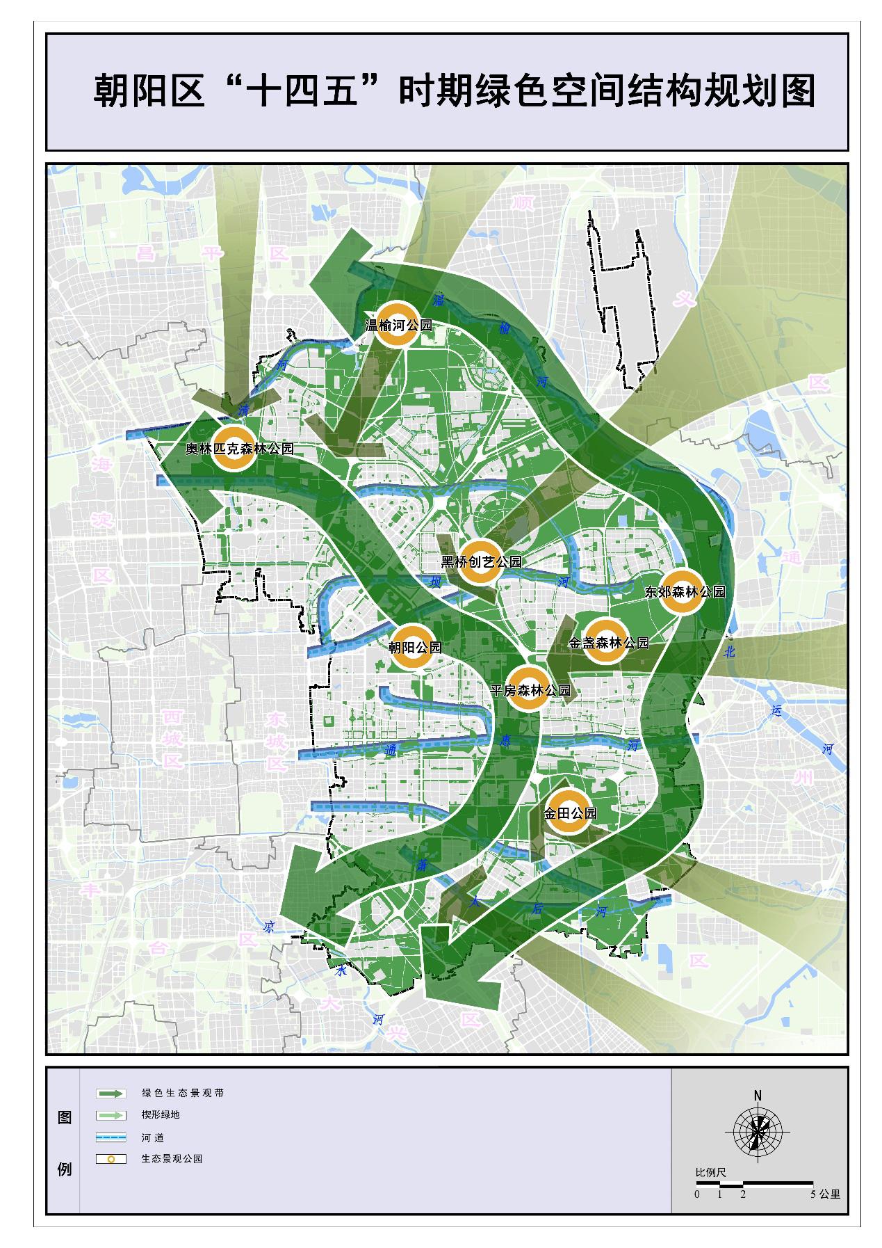 大尺度绿化示范工程。高标准完善大中小微公园体系,加快推进金盏森林公园、朝南森林公园等超大型公园建设,完成京城梨园(二期)等郊野公园建设,新建金盏中央公园、东风迎宾公园等一批城市公园。完成常营公园等现有公园提质增绿。大力实施新一轮百万亩造林工程,到2022年高水平完成造林绿化任务。推进朝阳“双奥”绿道和朝南区域公园绿地联通工程等绿道项目建设。