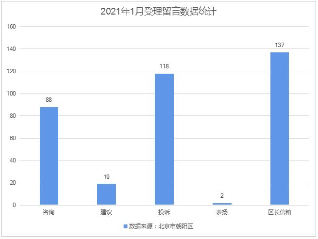 北京市be365_365在线官网下载_365体育旗下APP政府门户网站2021年1月共收到公众来信364件,其中咨询类信件88件,建议类信件19件,投诉类信件118件,表扬类信件2件,区长信箱信件137件,已全部办结。正在办理数0件。
