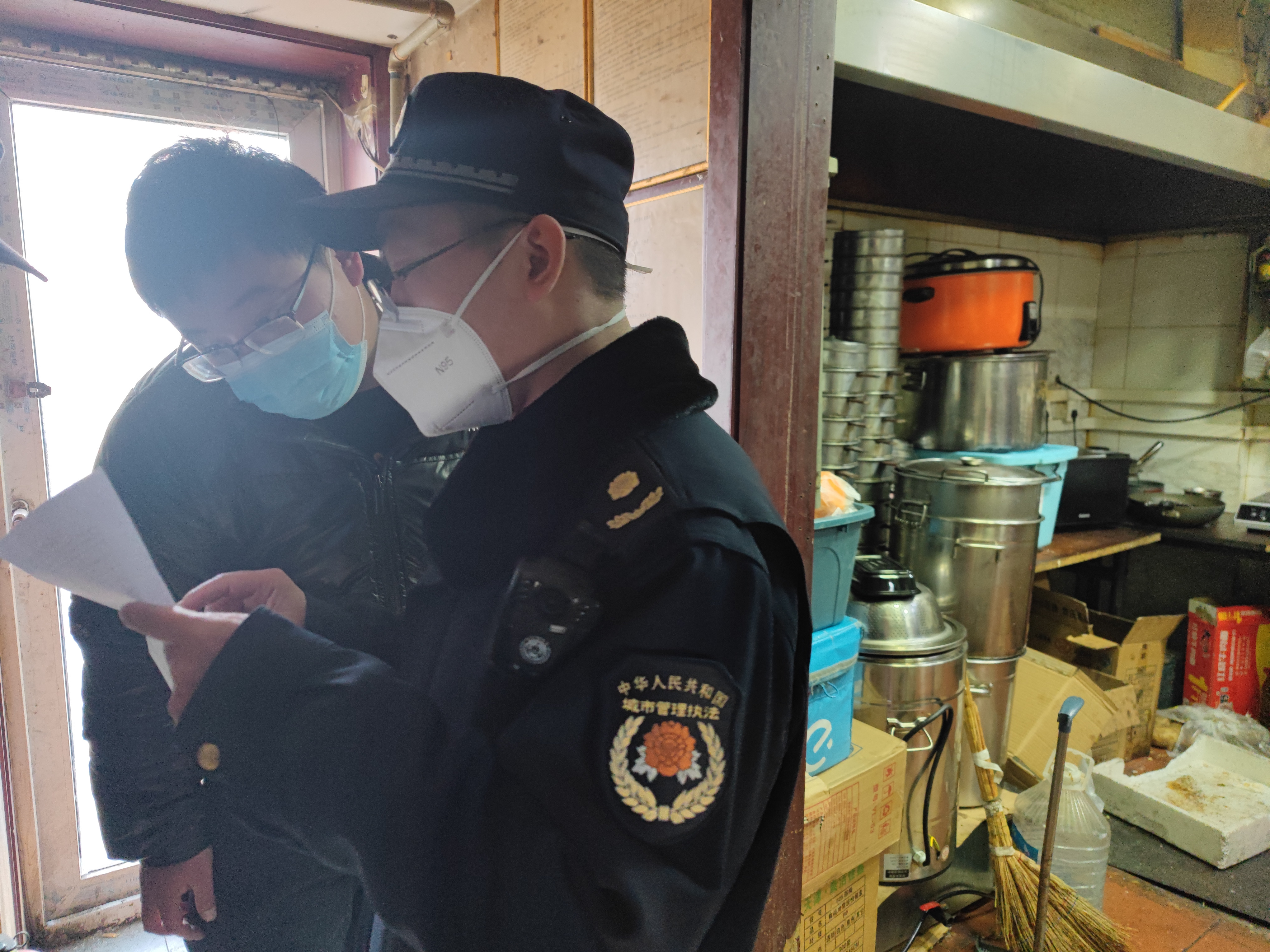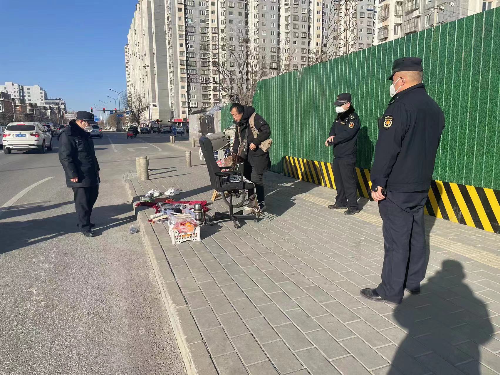 1月31日,东坝执法队对辖区商户“门前三包”落实情况进行检查。(通讯员 东坝 王化玲)