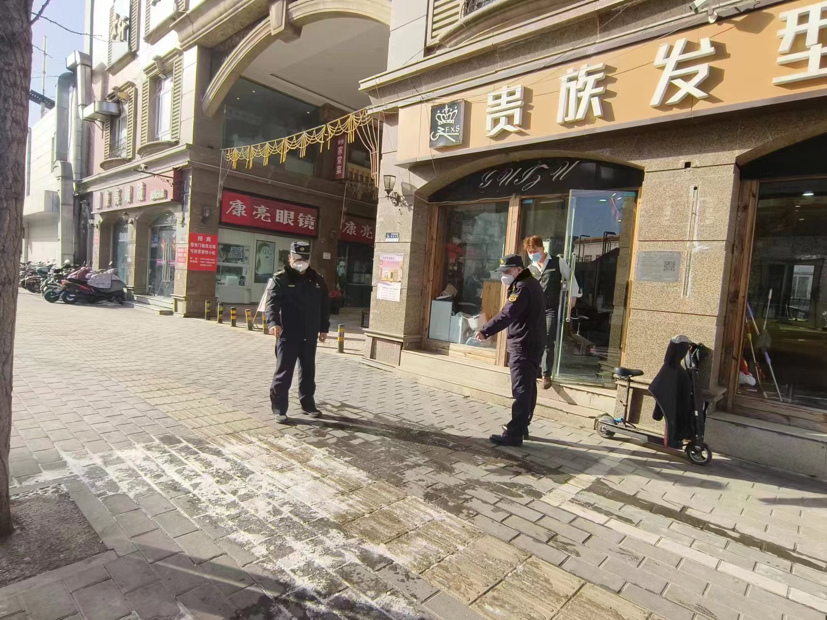 1月30日,机场执法队要求经营单位清除门前三包责任区积水。(通讯员 机场 蔡蒙)