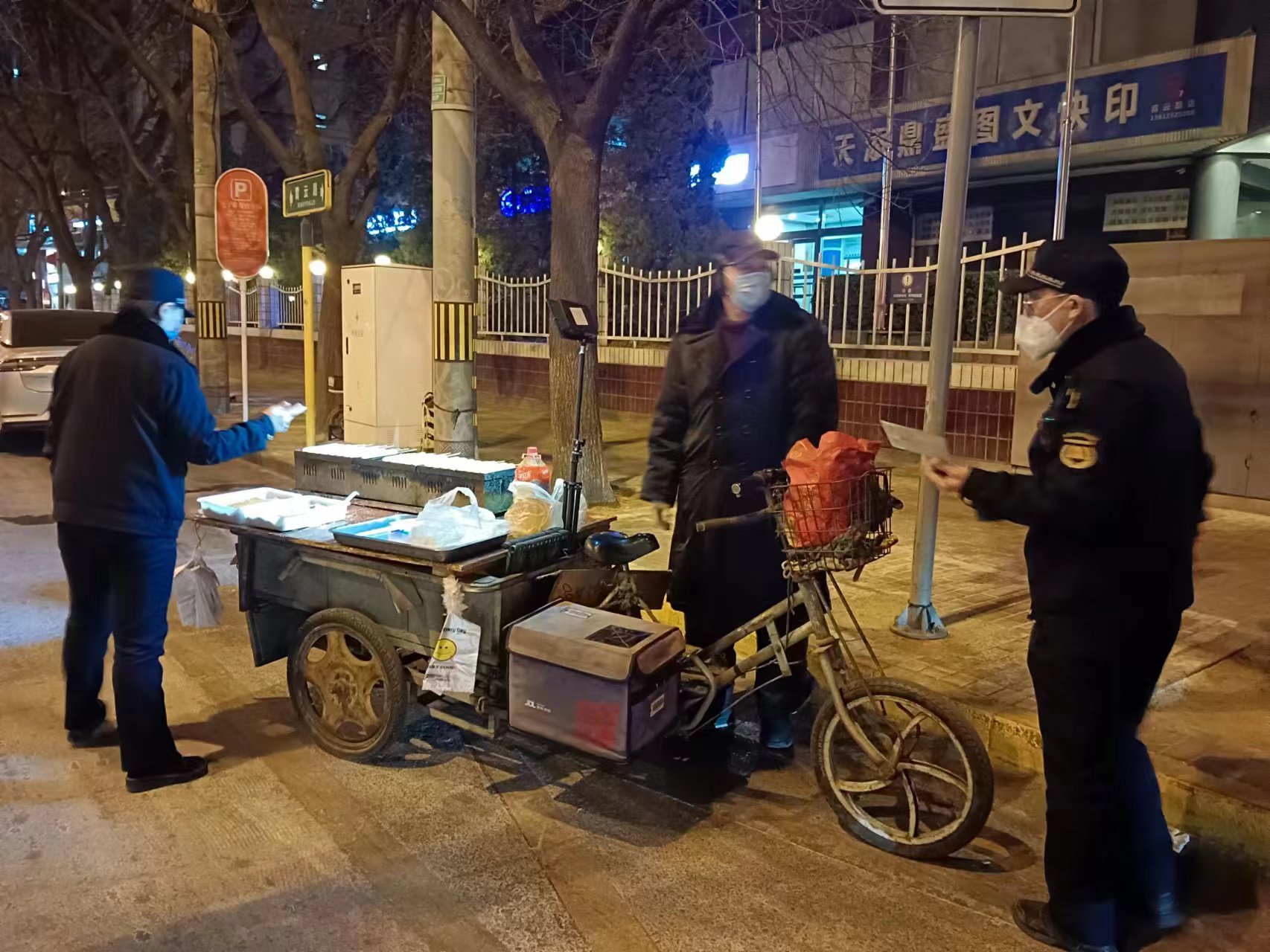 1月31日晚,麦子店执法队对巡查发现的无照游商进行查处。(通讯员 麦子店 郭晓丽)